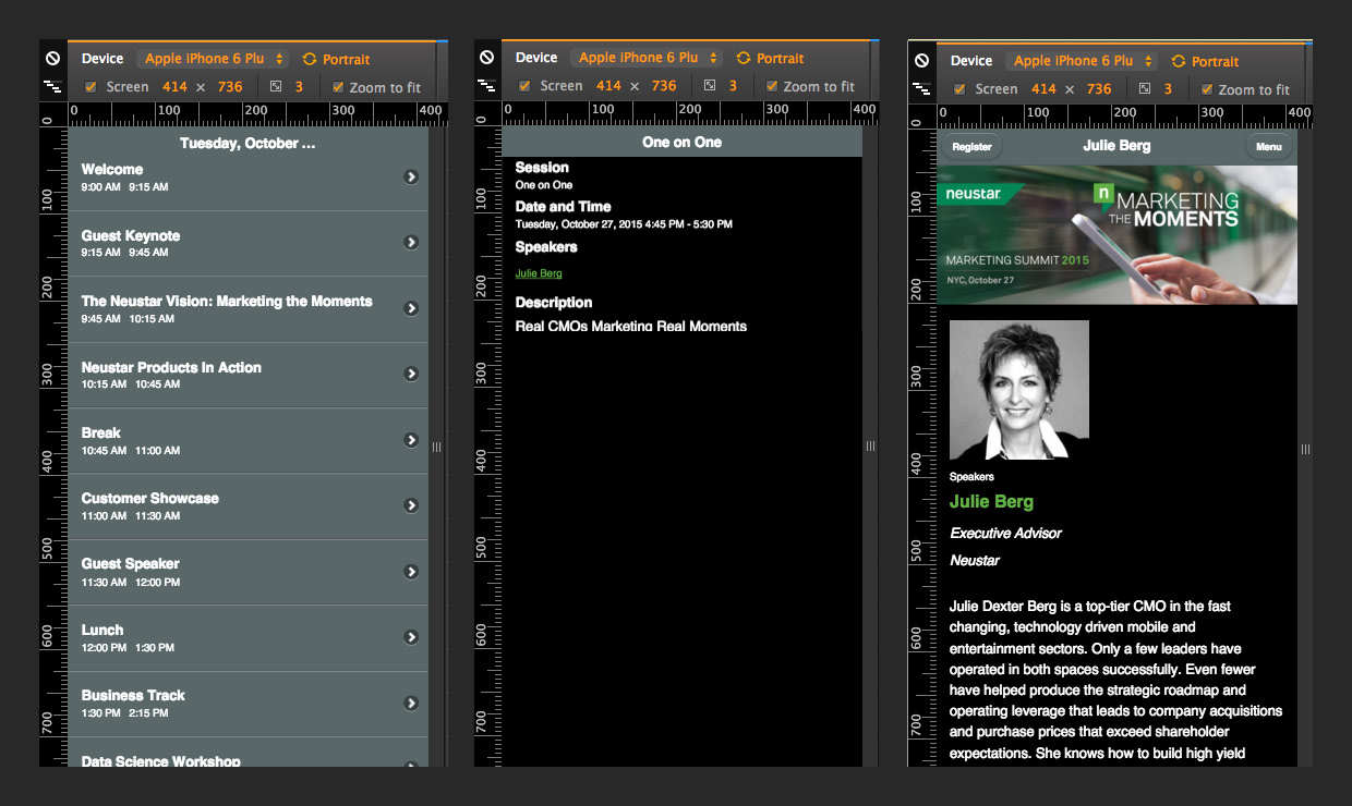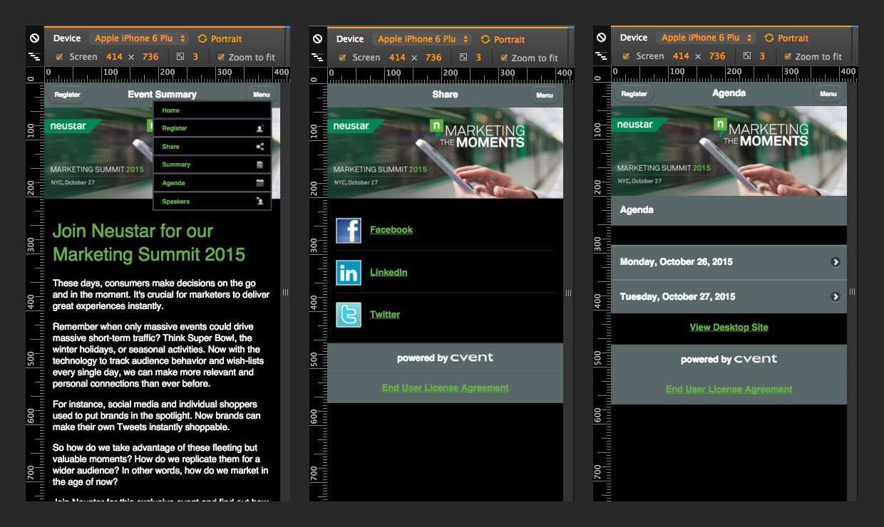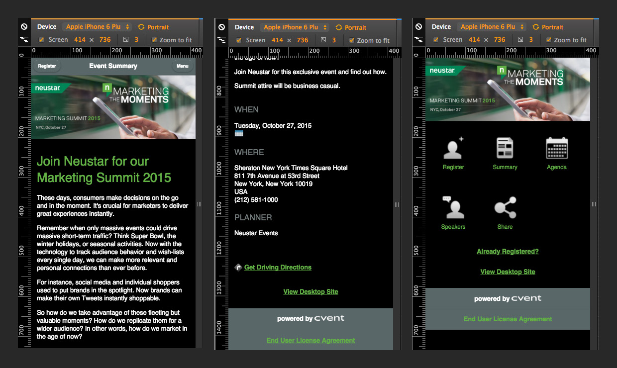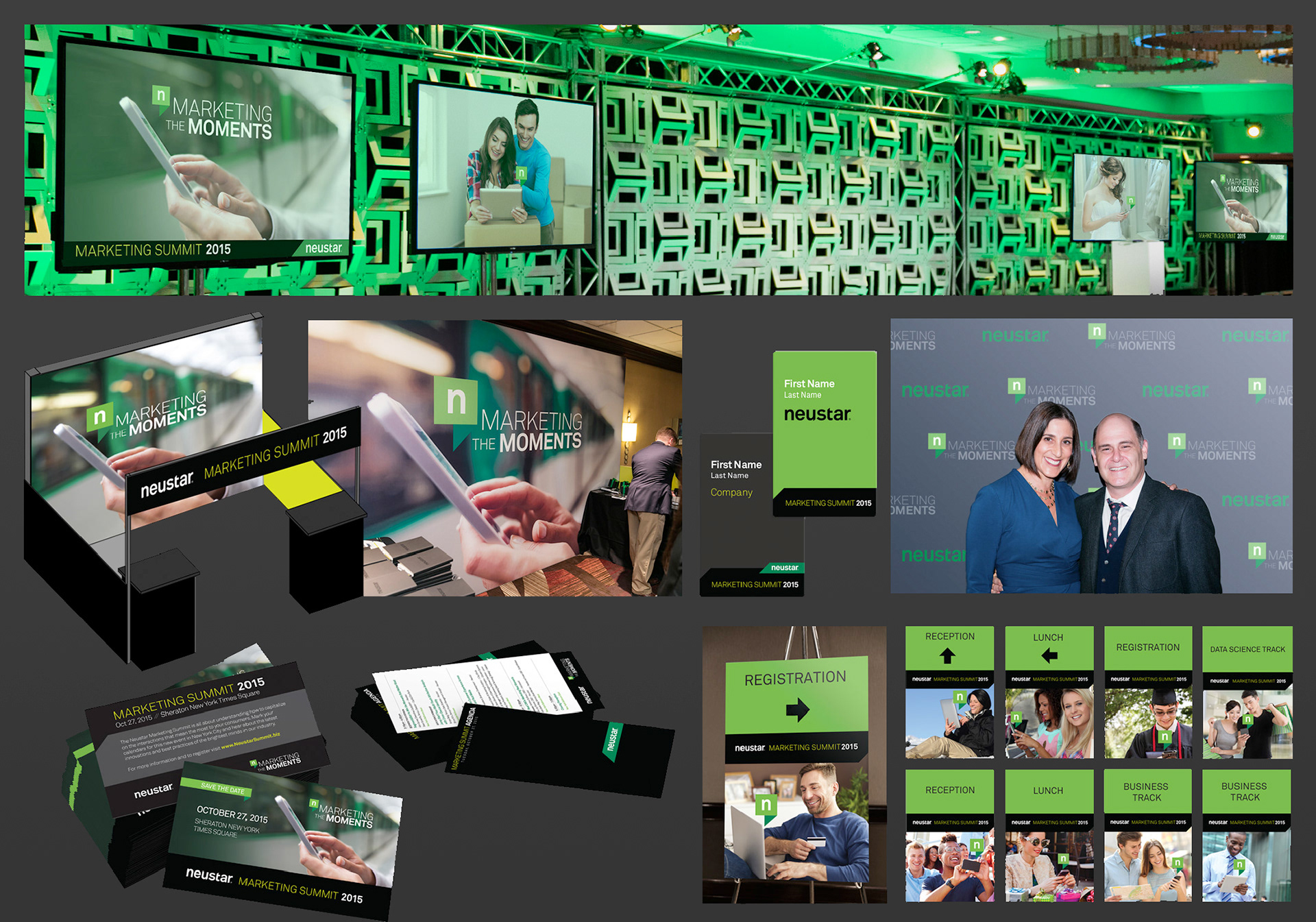 I Designed Neustar 2015 Marketing Summit from concept to stage, registration booth, print material, and user interface of desktop and mobile app.