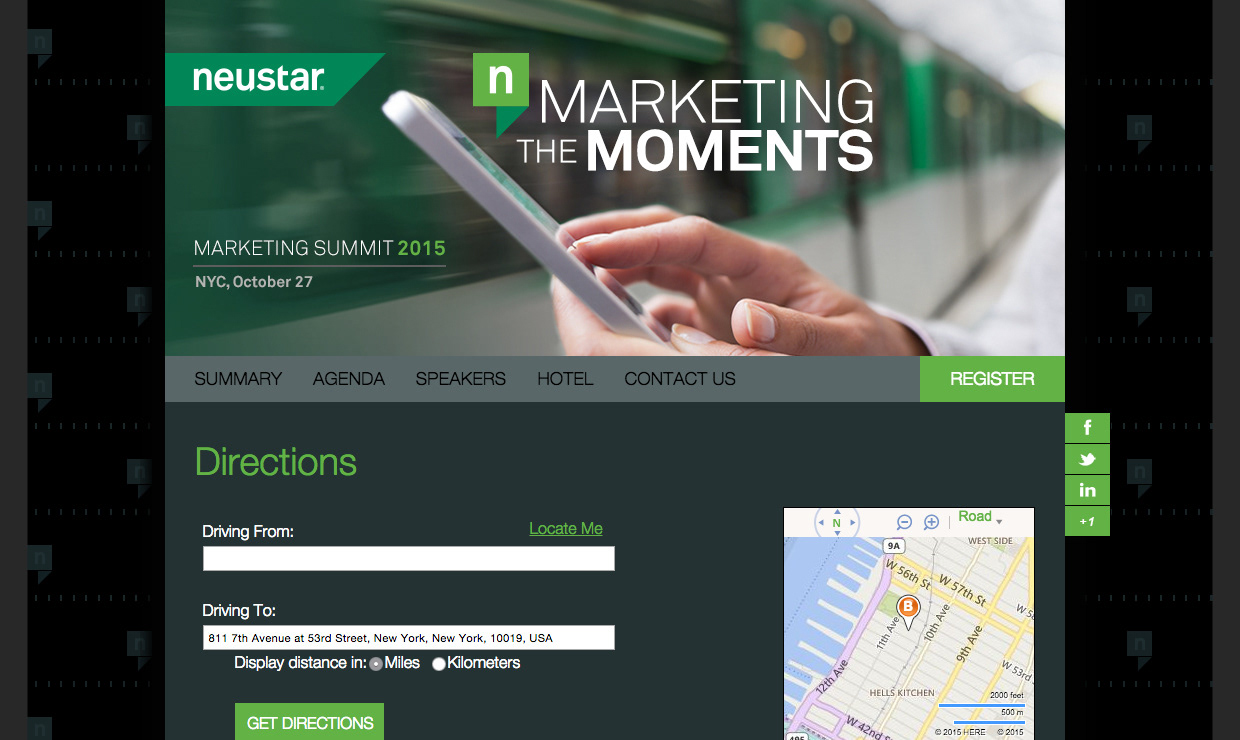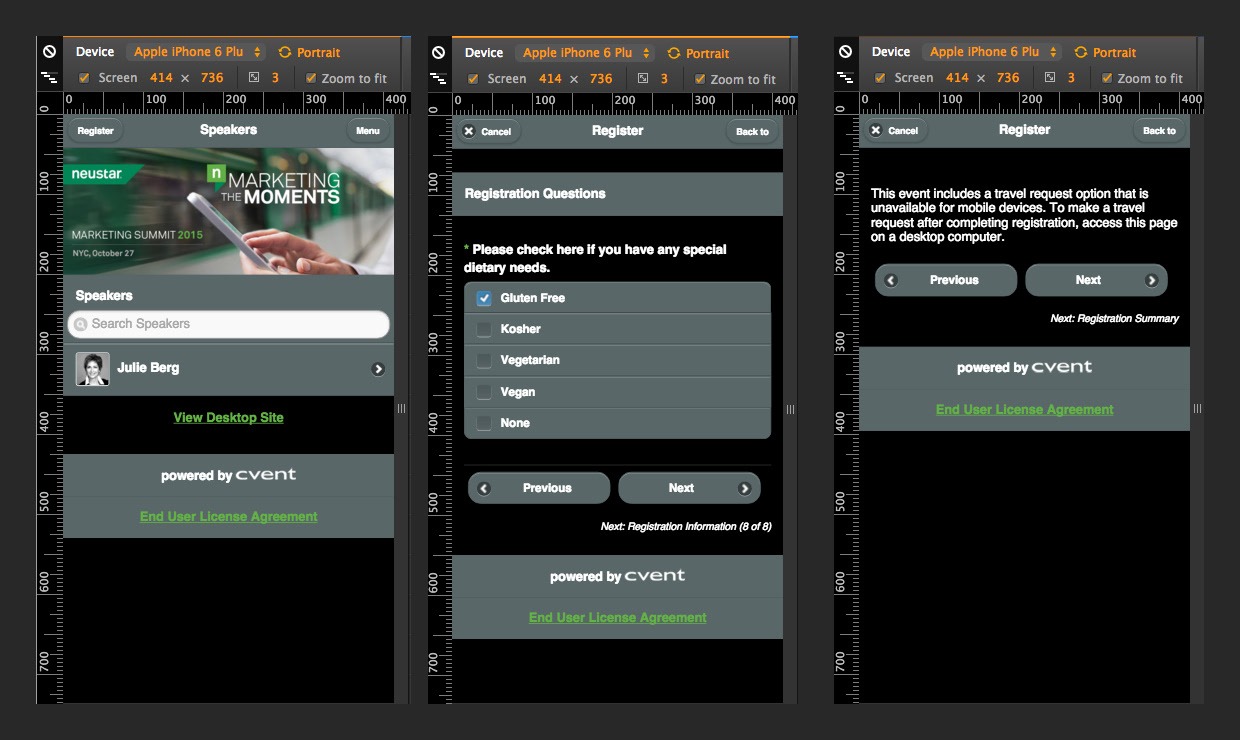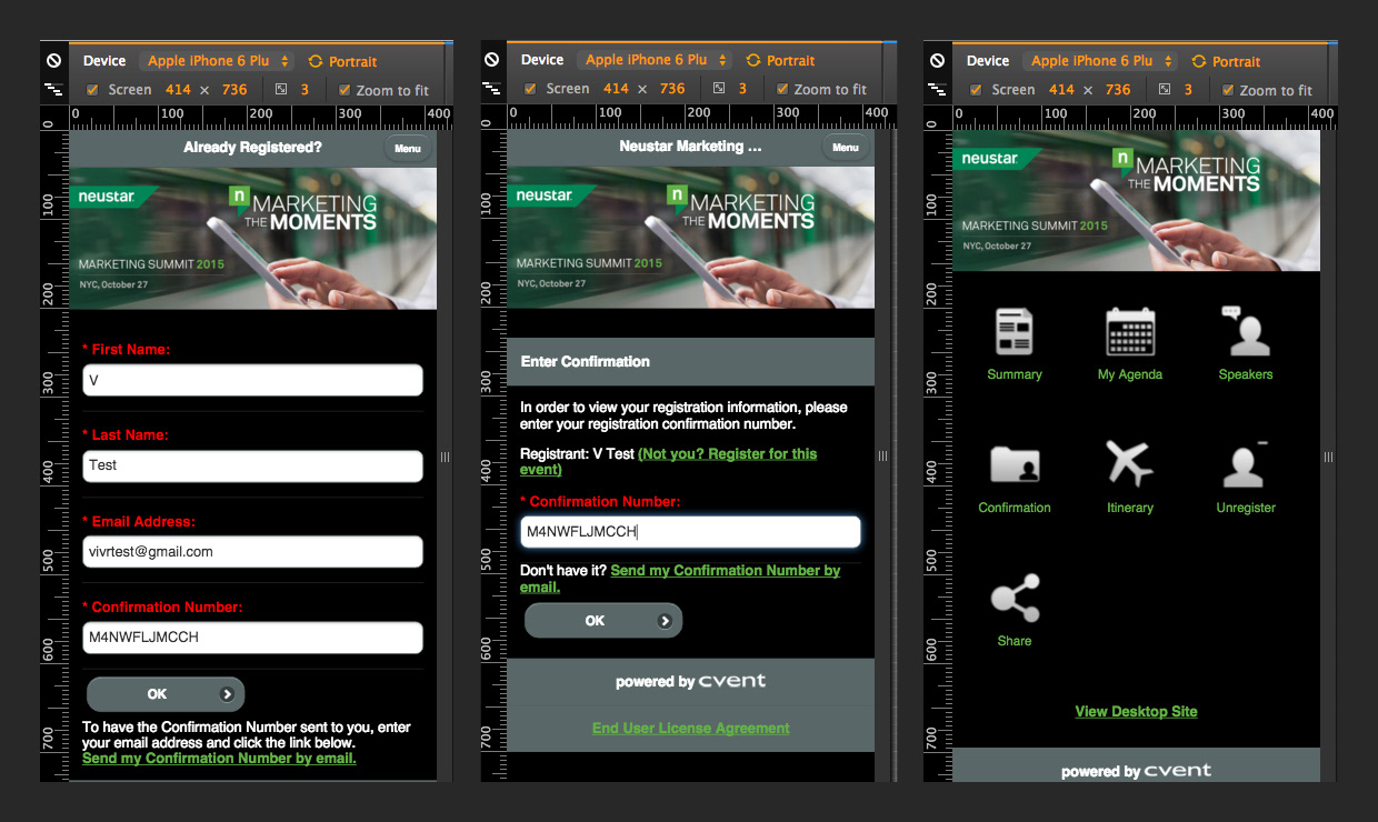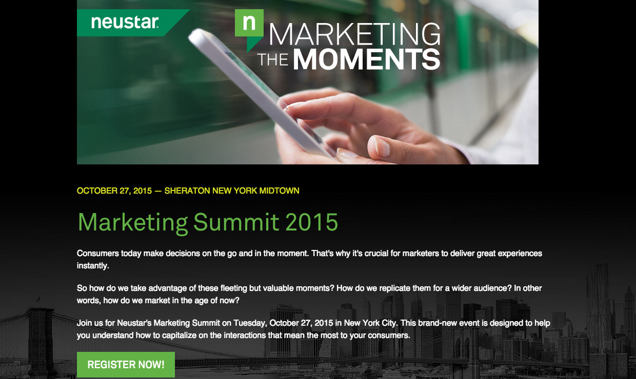 I Designed Neustar 2015 Marketing Summit from concept to stage, registration booth, print material, and user interface of desktop and mobile app.